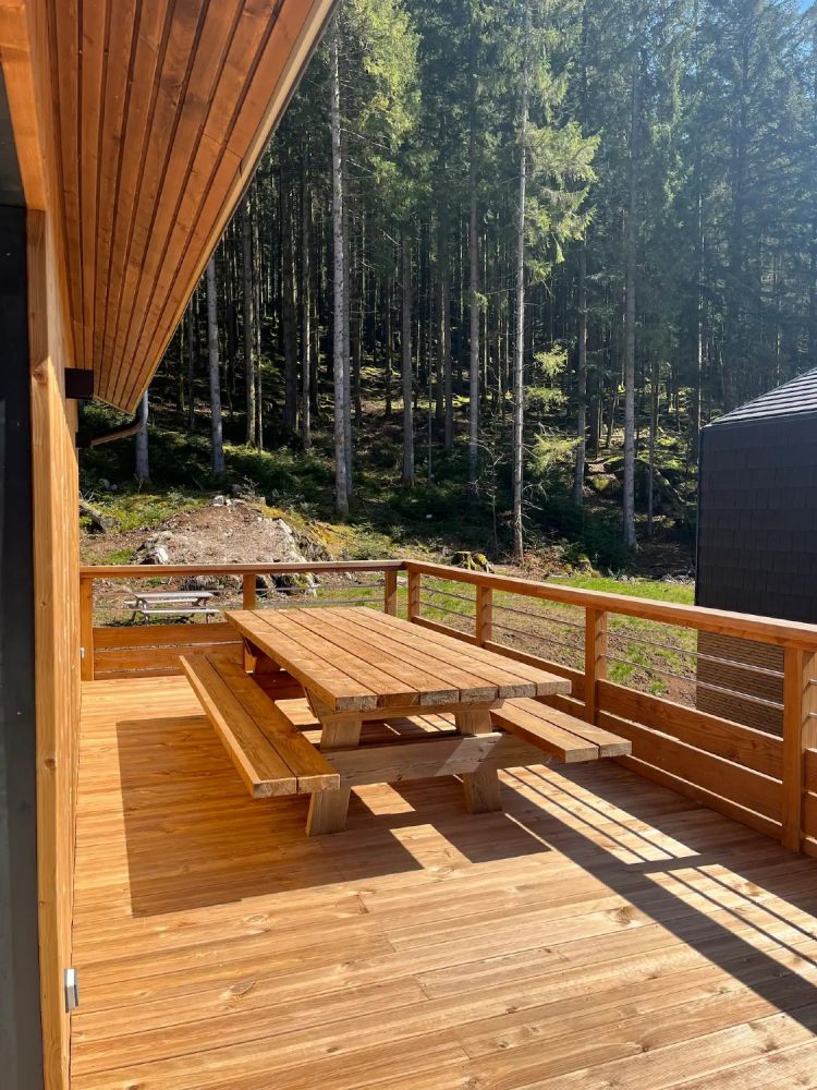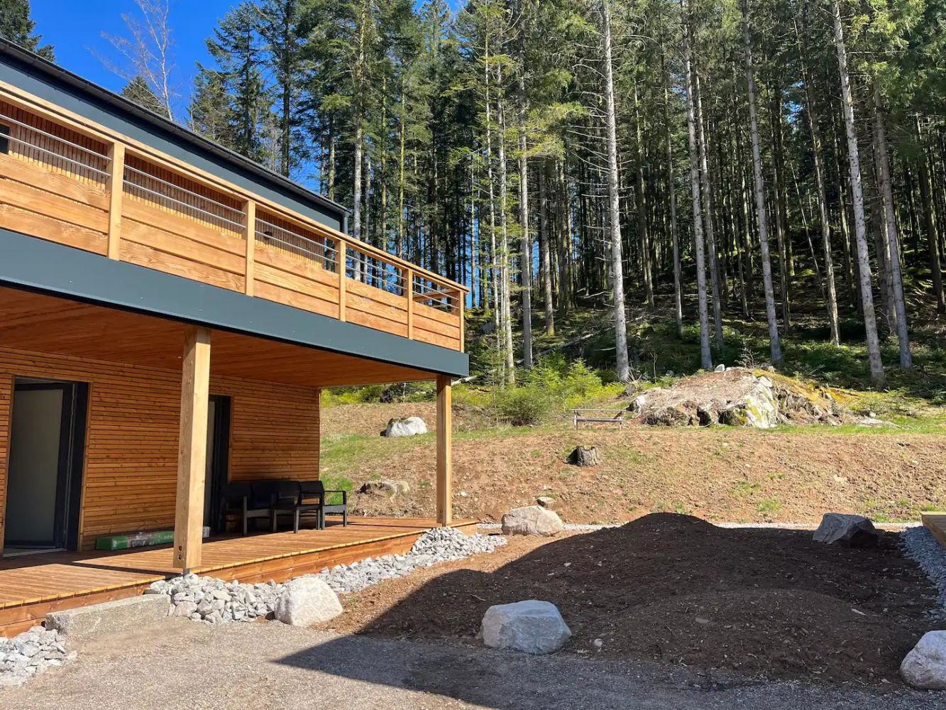 Nous mettons a disposition un chalet de style scandinave avec des lignes épurées, une belle terrasse donnant partiellement sur le lac.